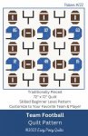 TEAM FOOTBALL QUILT PATTERN 72 X 72" (EPQ-30937) Traditionally Pieced 72" x 72" Quilt Skilled Beginner Level Pattern Customize to Your Favorite Team & Player Applique´ Number Templates for Helmet Included Cheer on your team! With all the available team fabrics and solids, it's easy to customize this quilt for any football fan. Use this quilt to watch the big game, whether on T.V. or on the field. Make this quilt extra special by using the included applique´ number templates to personalize the helmets for your favorite player.