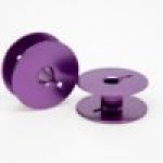 30 Purple Bobbins packaged in a Bobbin Box. M-class aluminum bobbins compatible with all Handi Quilter longarm machines. Bobbins are included in a clear plastic case with tray, great for keeping organized.